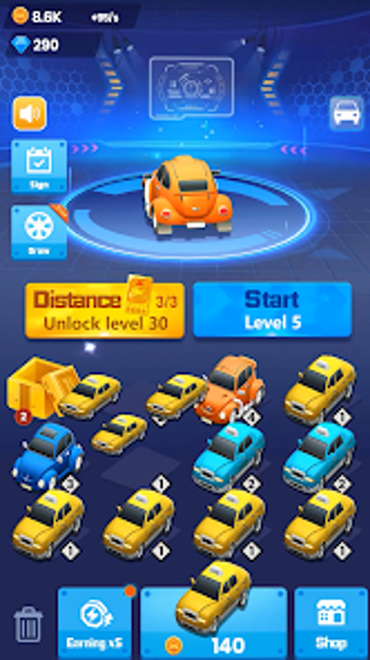Игра имеет механику слияния, где вы можете объединять автомобили одного типа, чтобы создавать более мощные и быстрые транспортные средства. Это добавляет стратегический элемент в игровой процесс, так как вам нужно тщательно планировать свои слияния, чтобы оптимизировать свои шансы на победу в гонках.